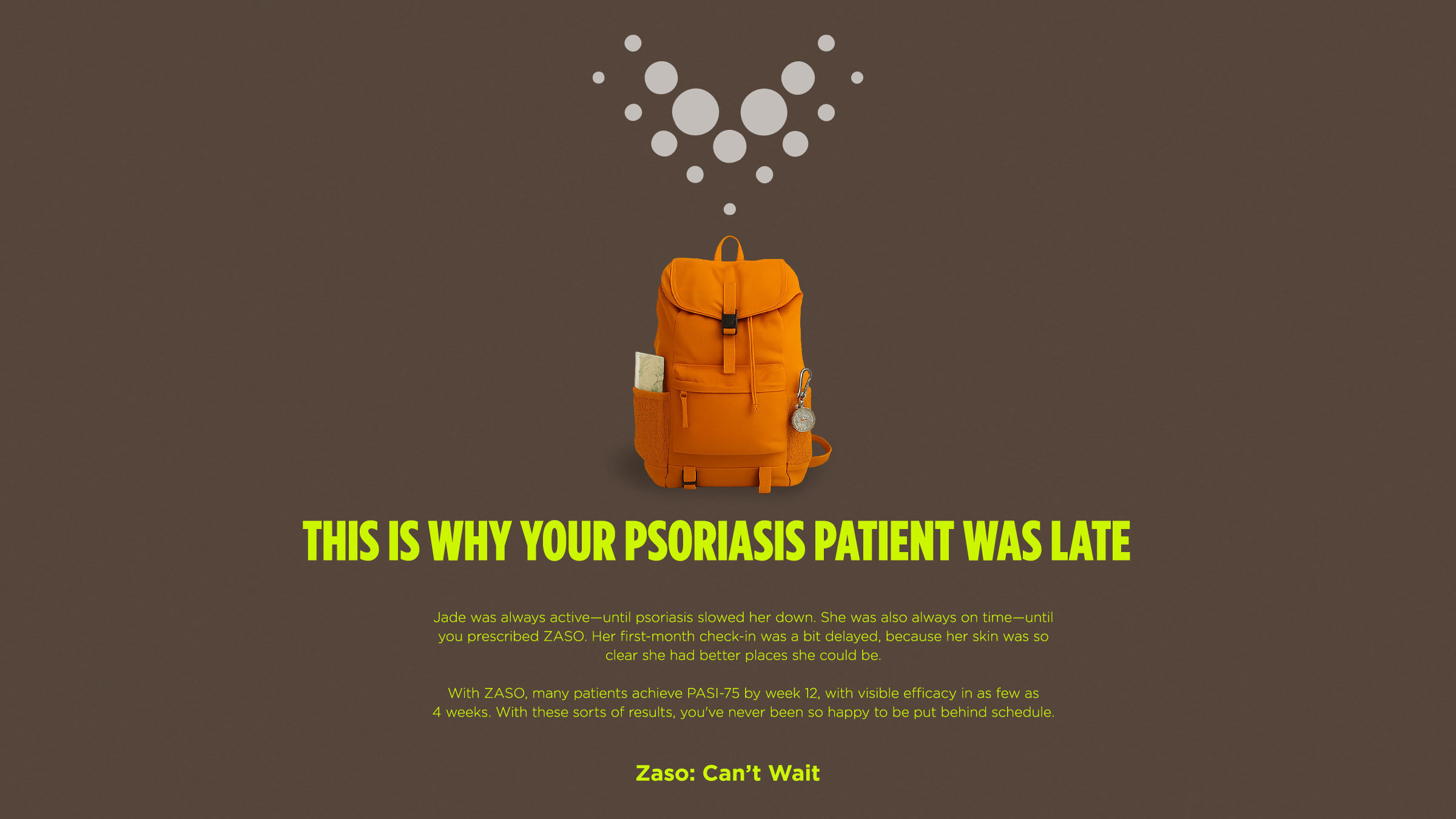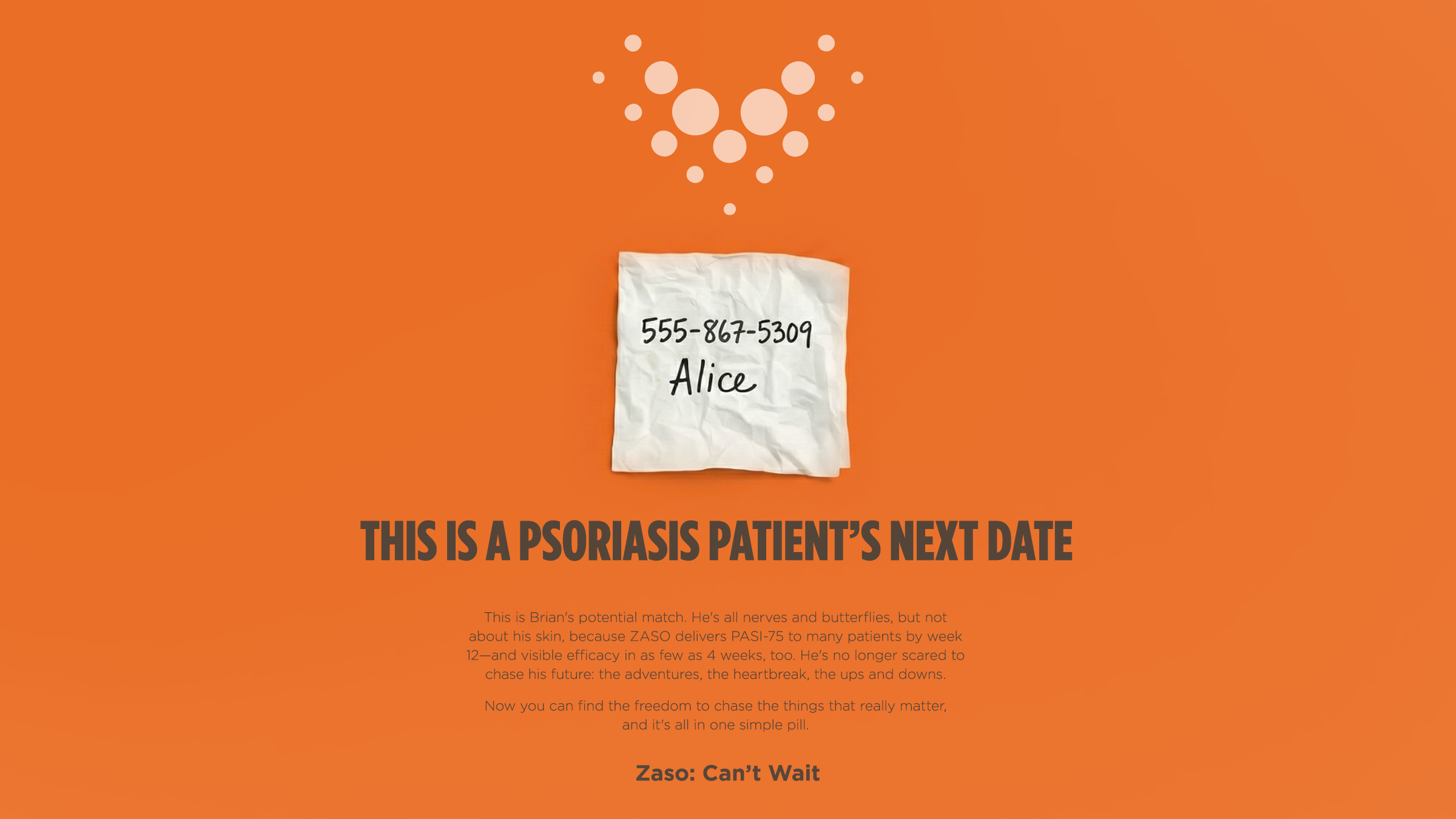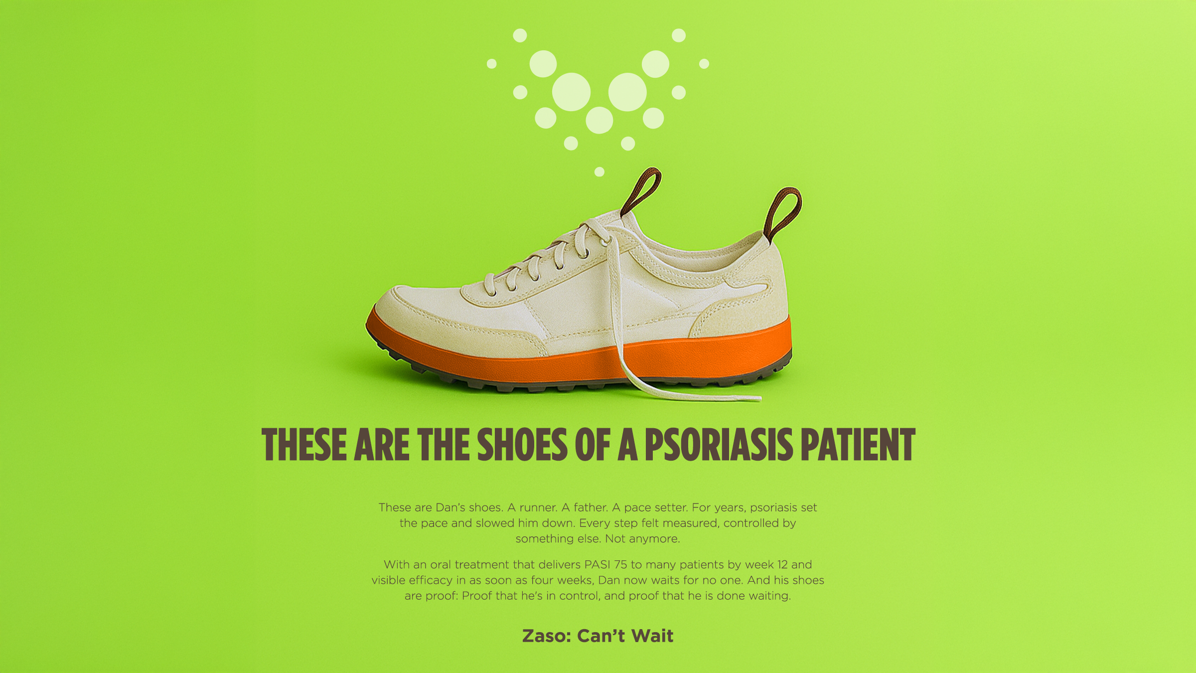 Plaque Psoriasis is a burden for all patients, from flares considered “mild” to patients with moderate to sever symptoms. Regardless, everyone suffers. With GSK’s new treatment that fills the space for those who are not able to prescribed injectables, their product provides a competitive solution with convenience. There are countless ads for psoriasis patients that end up blending together because they all look the same. The clients challenged us to break through to come up with something fresh and new.